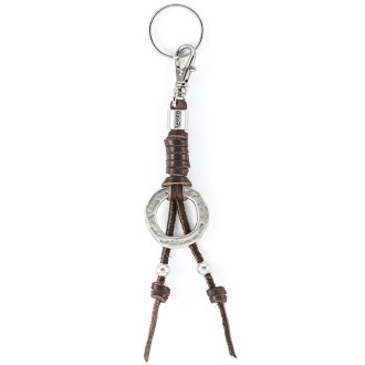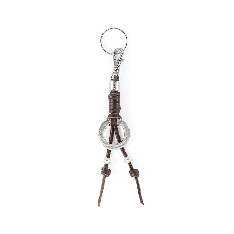 Keychain with high quality leather and silver-plated metal ring, the 2 elements are joined with a sliding knot creating a beautiful design, undoubtedly a good option to make a gift.