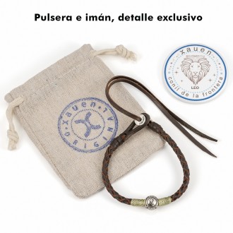 The Leo Bracelet from the Zodiac Collection by Xauen Original is handcrafted from vegetable-tanned cowhide leather, featuring an artisanal braid that conveys presence and authenticity. Its steel centerpiece with the Leo symbol adds identity, while the exclusive Xauen leather loop allows for an easily adjustable fit. Each bracelet includes a complimentary magnet featuring the sign’s image, a symbol of strength and personal energy.