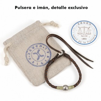 The Libra Bracelet from the Zodiac Collection by Xauen Original is handcrafted from vegetable-tanned cowhide leather, featuring an artisanal braid that reflects elegance and authenticity. Its steel centerpiece with the Libra symbol adds identity, while the exclusive Xauen leather loop allows for an easily adjustable fit. Each bracelet includes a complimentary magnet featuring the sign’s image, a symbol of harmony and inner balance.