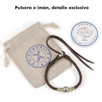 The Pisces Bracelet from the Zodiac Collection by Xauen Original is handcrafted from vegetable-tanned cowhide leather, featuring an artisanal braid that conveys harmony and authenticity. Its steel centerpiece with the Pisces symbol adds identity, while the exclusive Xauen leather loop allows for an easily adjustable fit. Each bracelet includes a complimentary magnet featuring the sign’s image, a symbol of intuition and spiritual energy.