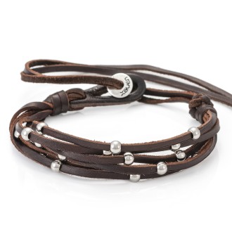 This bracelet is made with leather strips on which silver-plated metal balls are set. It is a classic bracelet from our firm and dresses your wrist without the need for other accessories.